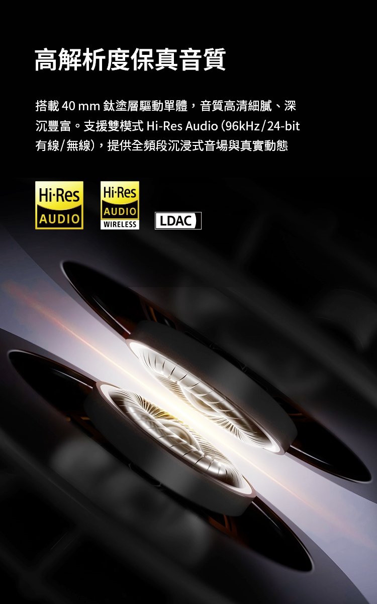 性價冠軍・雙金標音質|同時具備 Hi-Res 有線與無線雙金標認證,支援 LDAC 高清解碼,以親民價格提供發燒級音質,滿足對音質有要求的學生與日常通勤族。