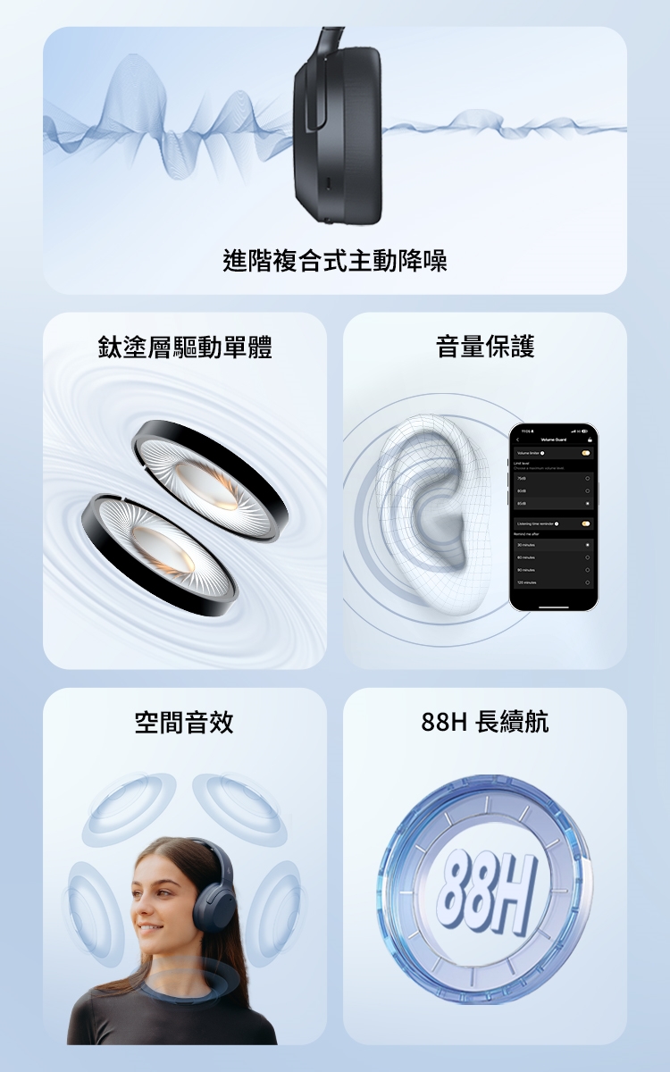 A:適合。88 小時長效續航搭配深度降噪,可在通勤或安靜學習環境中長時間使用而不受干擾。