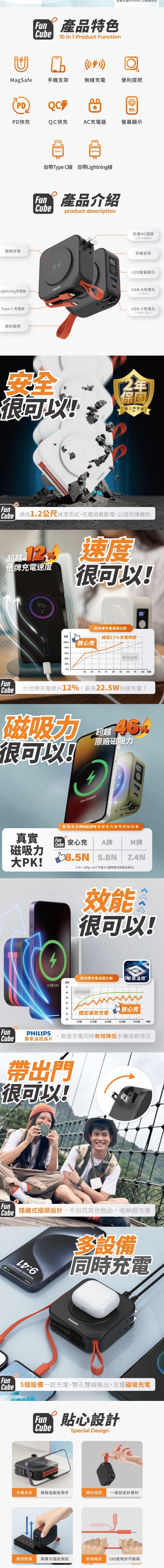 ▶飛利浦貼心多重安全防護:過充保護、過流保護、過放保護、電流偵測、▶過壓偵測、短路保護