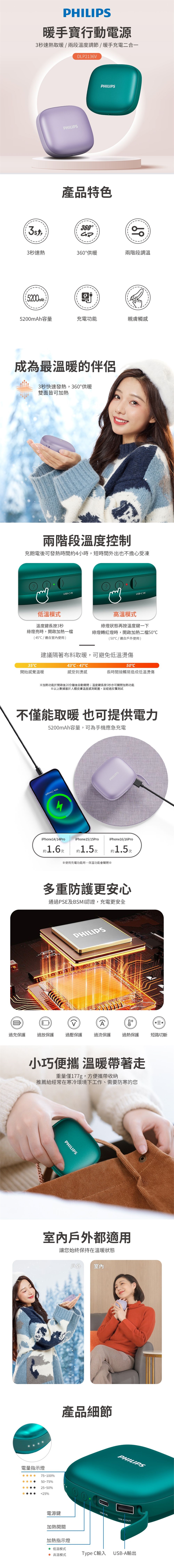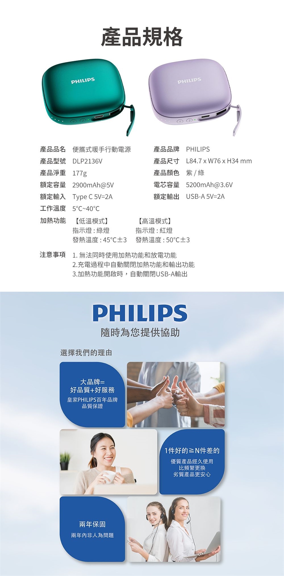 ▶飛利浦貼心多重安全防護:過充保護、過流保護、過放保護、電流偵測、▶過壓偵測、短路保護