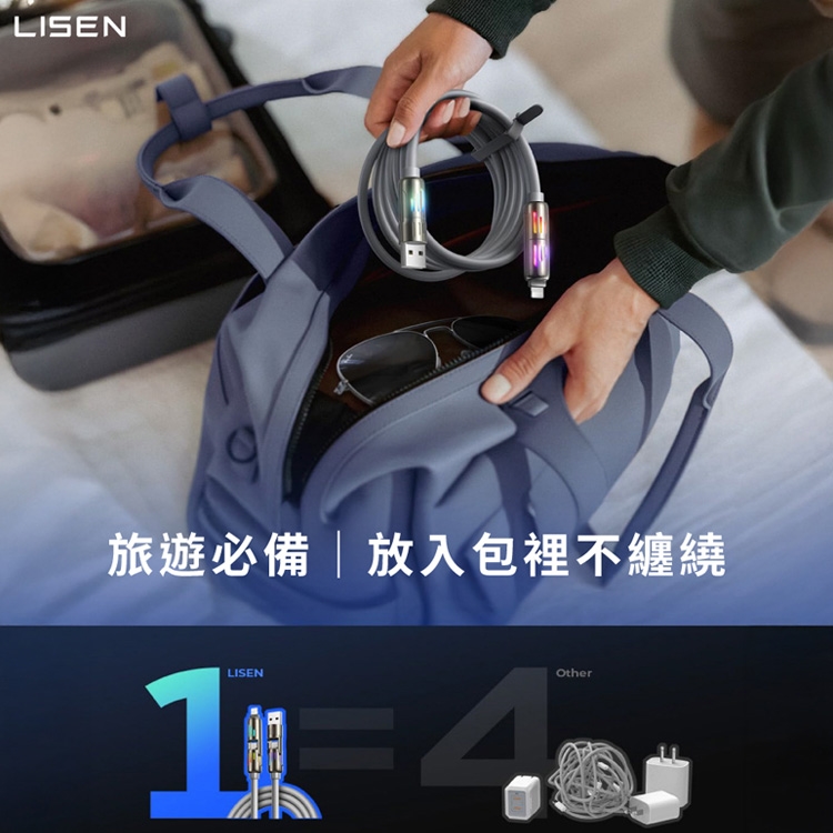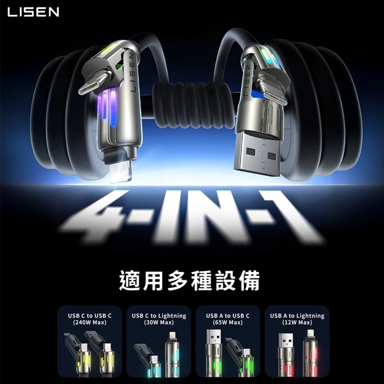 Lisen L110 240W 四合一快充線USB+Type-C to Type-C+Lightning-1米