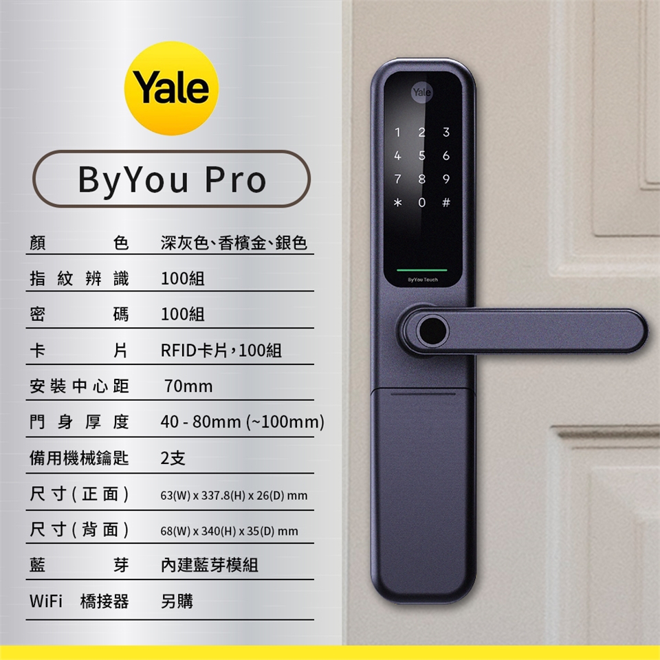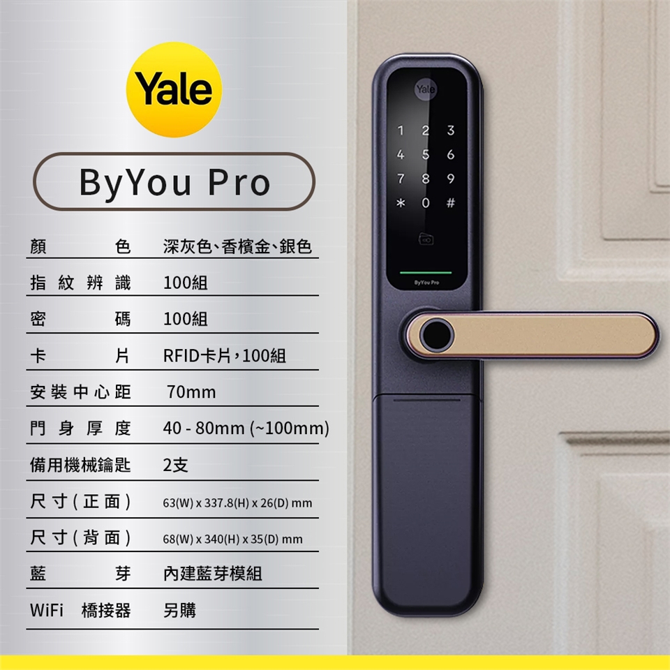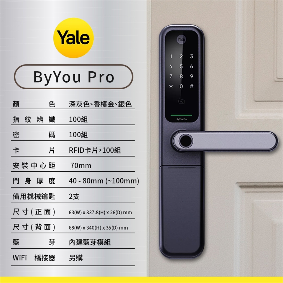 品名:Yale ByYou ProA指紋卡片五合一電子鎖-銀色/金色/深灰色(含基本安裝)
