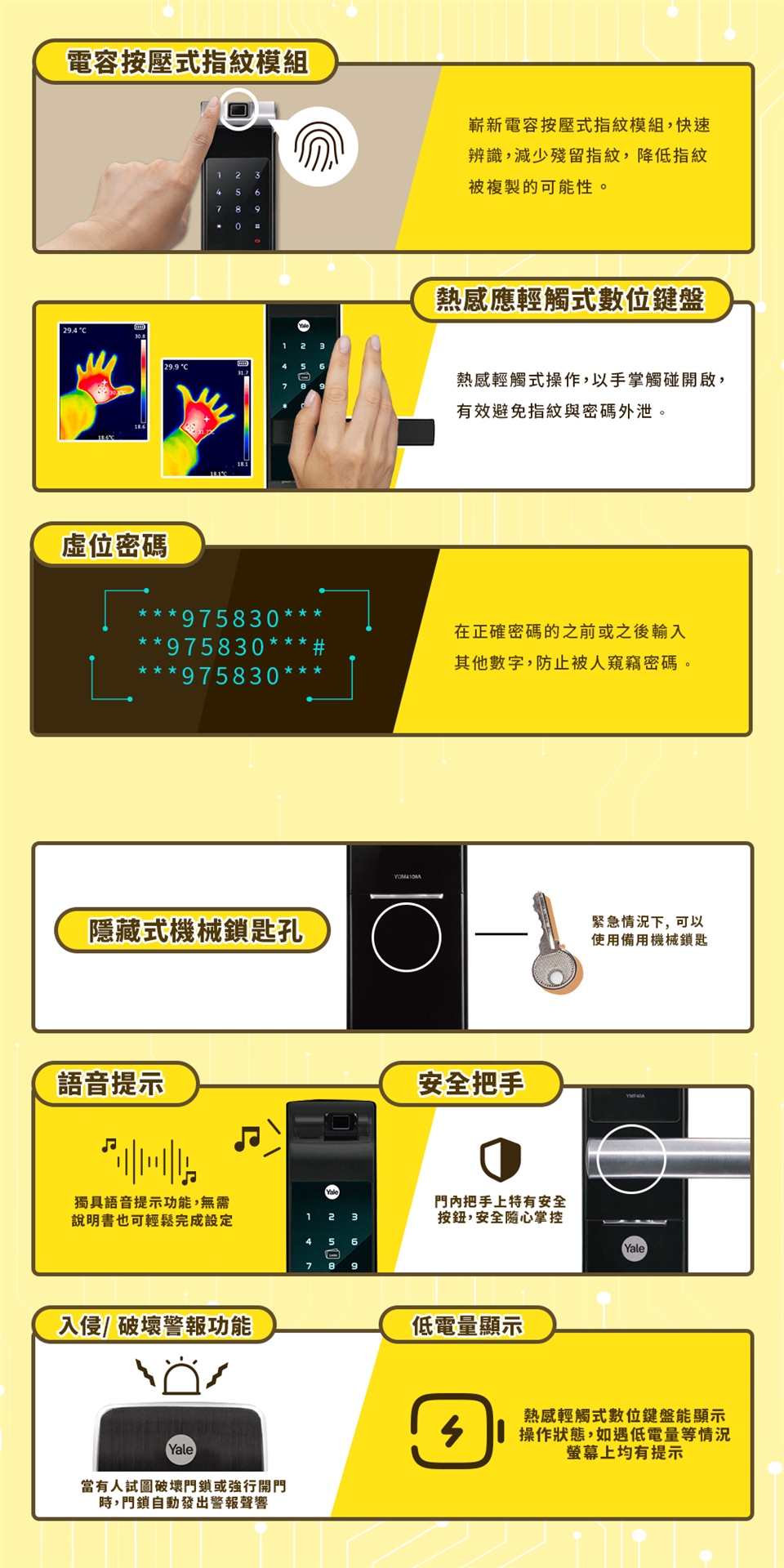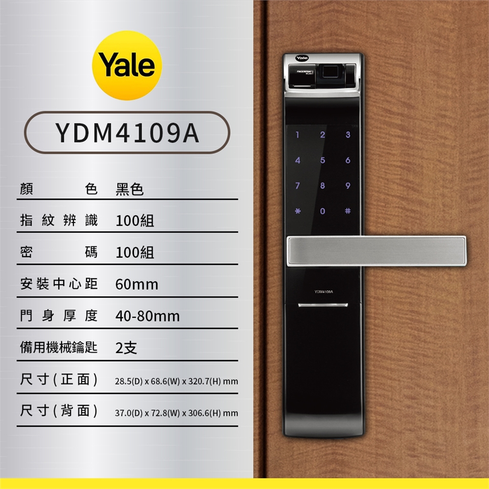 品名:Yale YDM4109A指紋密碼電子鎖-黑色(含基本安裝)