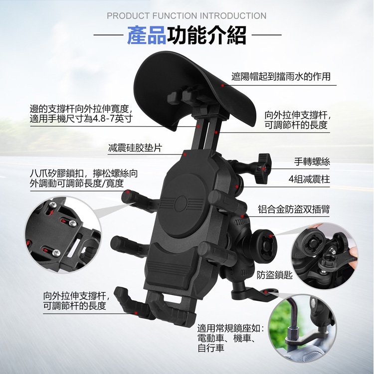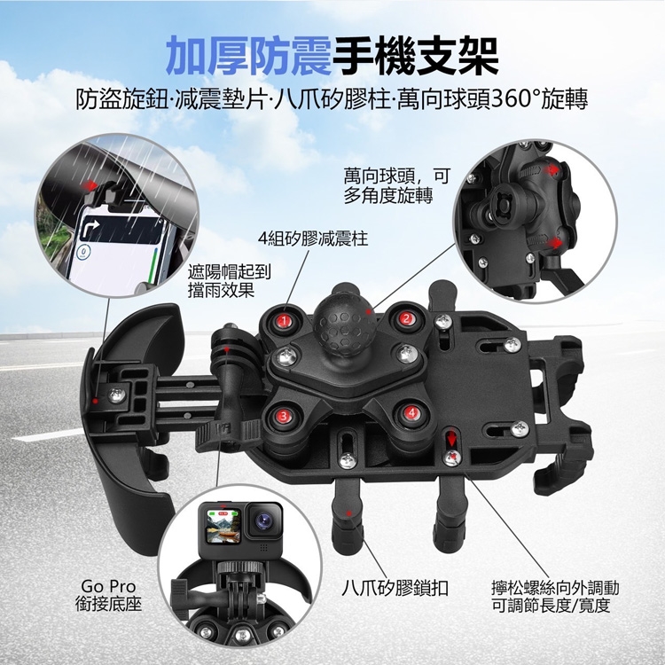 規格:商品名稱:CS-2056B1八爪鋁合金機車手機支架