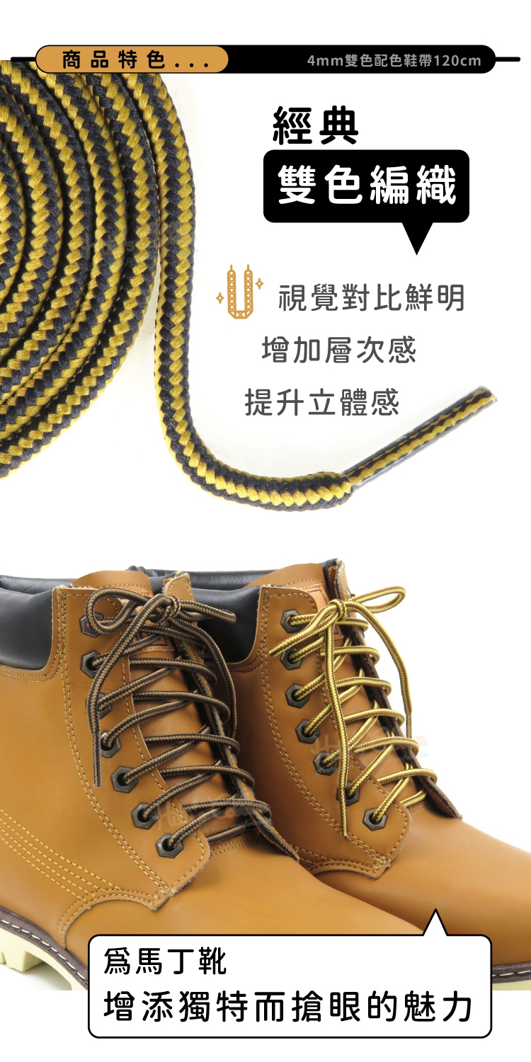 雙色編織鞋帶 大頭鞋鞋帶 大頭皮靴鞋帶