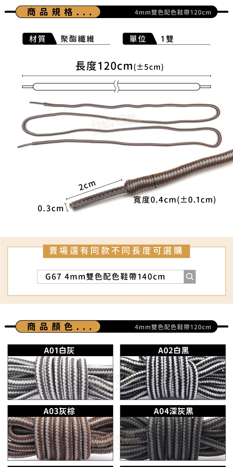 G67 4mm雙色配色鞋帶140cm