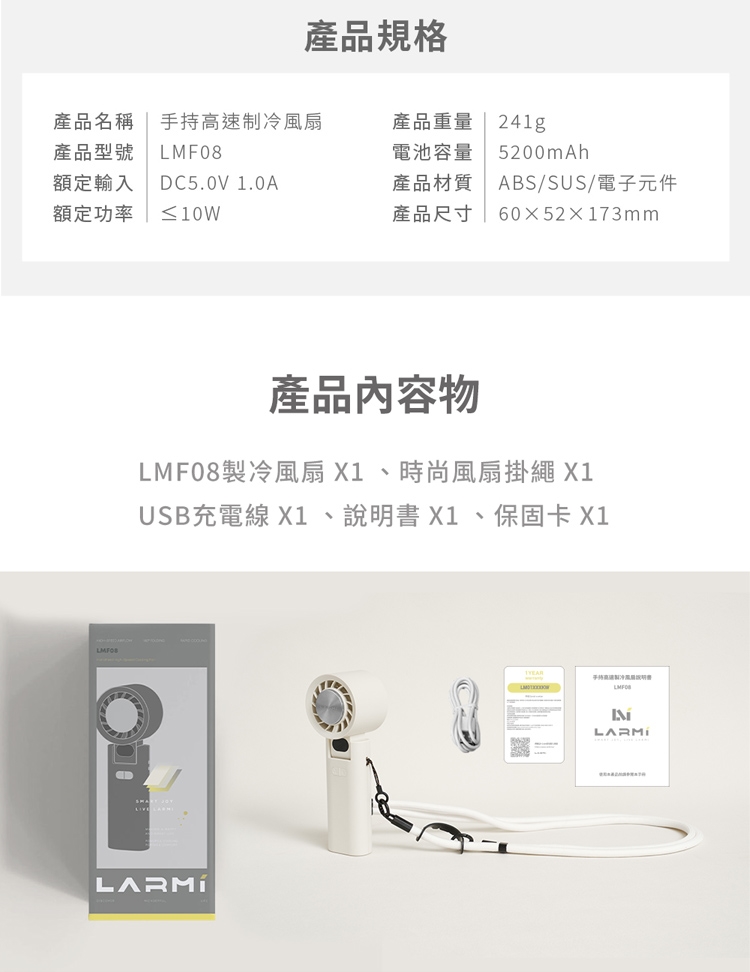 樂米LARMI 手持高速製冷風扇 LMF08