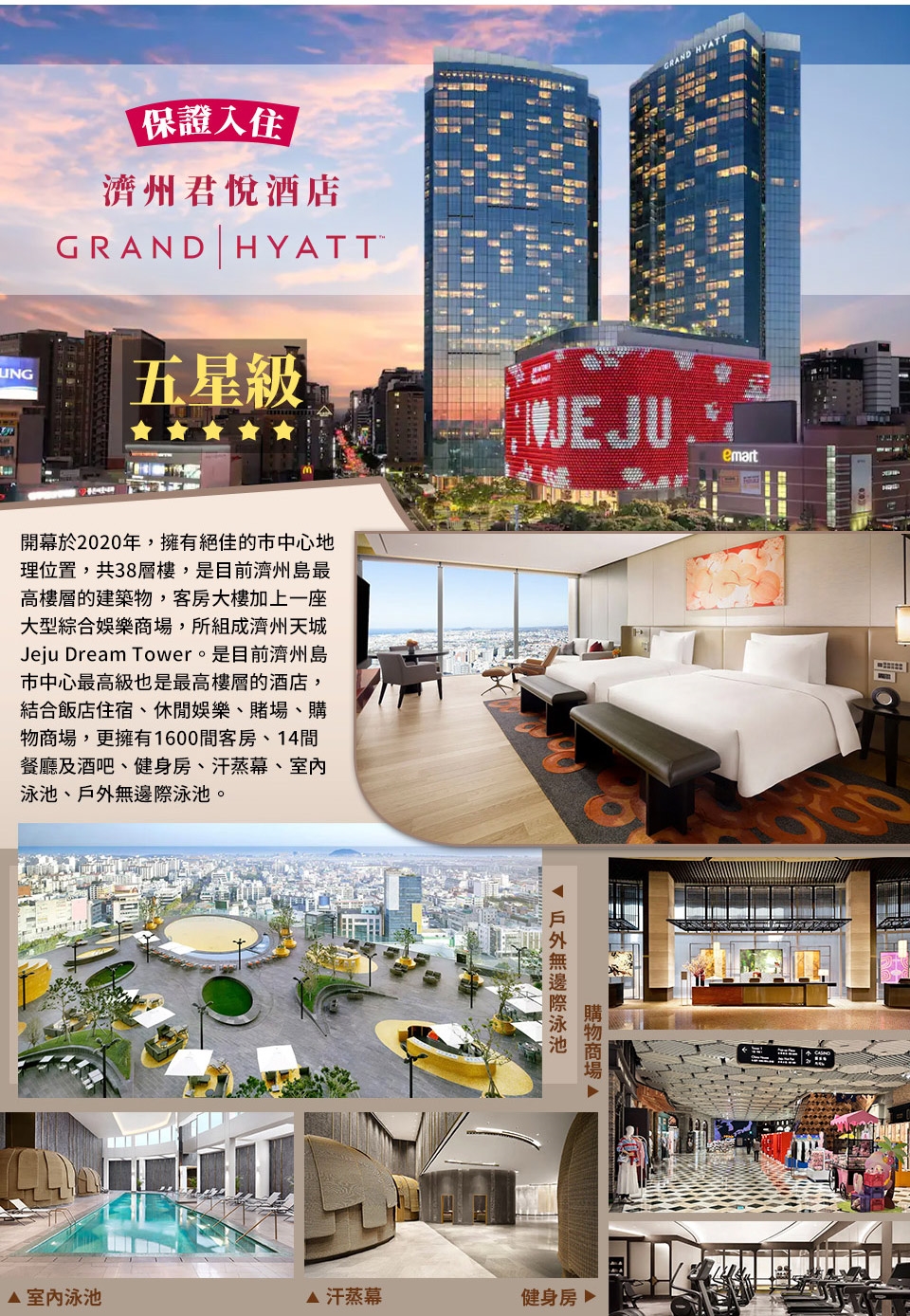 【第4天】 觀音寺-精裝彩妝坊-【韓流文化體驗(韓式飯捲DIY+傳統韓服體驗)】-濟州天城Jeju Dream Tower GRAND HYATT五星飯店使用設施(室外無邊際游泳池+休閒躺椅+室內游泳池+健身房+兒童游樂中心+韓式潮流購物街) |