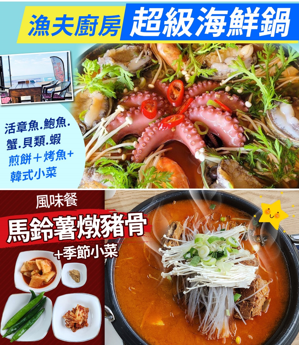 【島中之島~牛島】由於樣子很像是一頭臥牛伸著頭的樣子,而取了牛島這樣的名字。從北濟州郡舊左邑終達里的海岸觀看,可以一眼從牛頭看到牛尾,欣賞牛島特別的模樣。島約長3.8公里,海岸線總長約17公里,面積605公頃。牛島大約到了朝鮮肅宗23年(1679)設置了國有牧場之後才開始有人登島,開始有人居住則大約是從150年前開始。當時為了管理及飼育國馬,開始有人在島上往來,到了憲宗10年(1844)金石麟進士一行人入島後才正式有人在島上定居。牛島擁有地勢緩和的沃土、豐富的漁場、牛島八景等上天賜予的良好天然條件,再加上濟州海女與石牆路等,讓來這裡的遊客就可以體驗到只有濟州島才有的獨特傳統文化與自然環境,就好比是個縮小版的濟州島。這裡也是著名韓劇的取景地,崔智友的《連理枝》和全智賢的《觸不到的戀人》都在牛島取過景,而韓國影后全度妍的《人魚公主》絕大部分場景都是在牛島拍攝的,牛島已然成為代表性的旅遊景點之一。 早餐:飯店內 午餐:馬鈴薯燉豬骨湯+季節小菜 晚餐:★部落客推薦★濟州私廚~黑毛豬+醬烤豬排+熟食百匯燒烤吃到飽食放題(加贈每桌一份鮑魚+鮮蝦) |