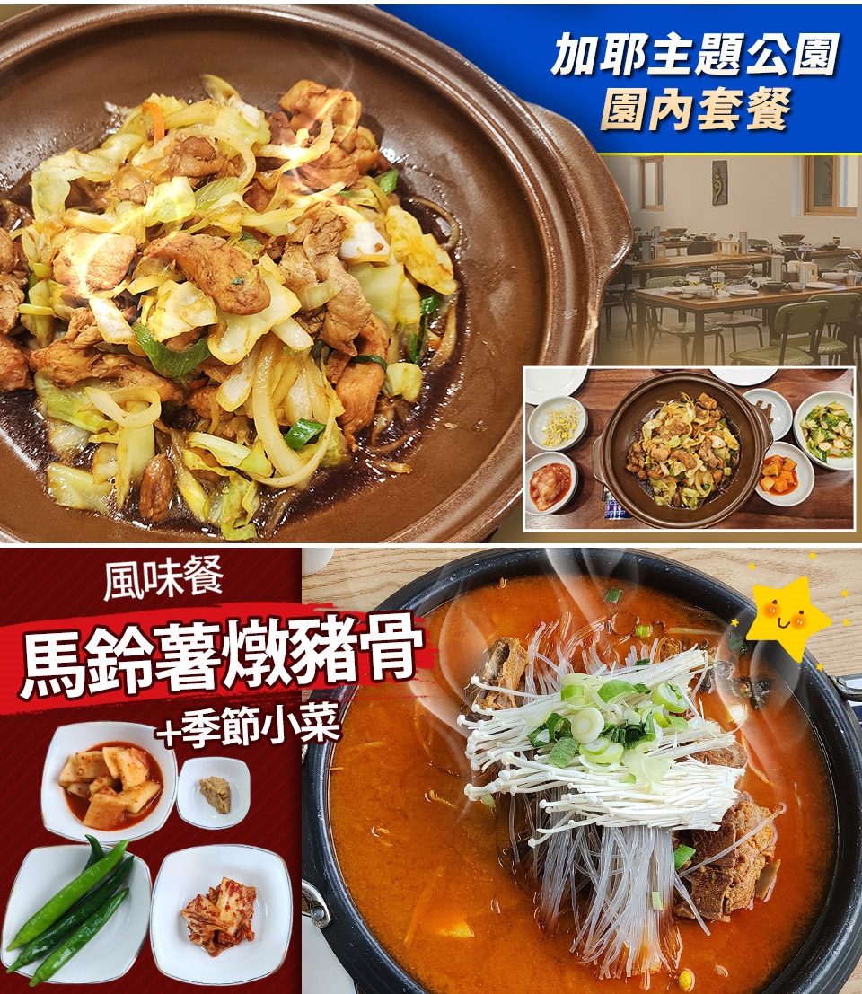 今日集合於桃園國際機場,搭乘豪華客機飛往韓國 早餐:韓式壽司(每人一條) 午餐:馬鈴薯燉豬骨風味餐 晚餐:【韓國藍絲帶認證】喜笑顏開燉排骨 |