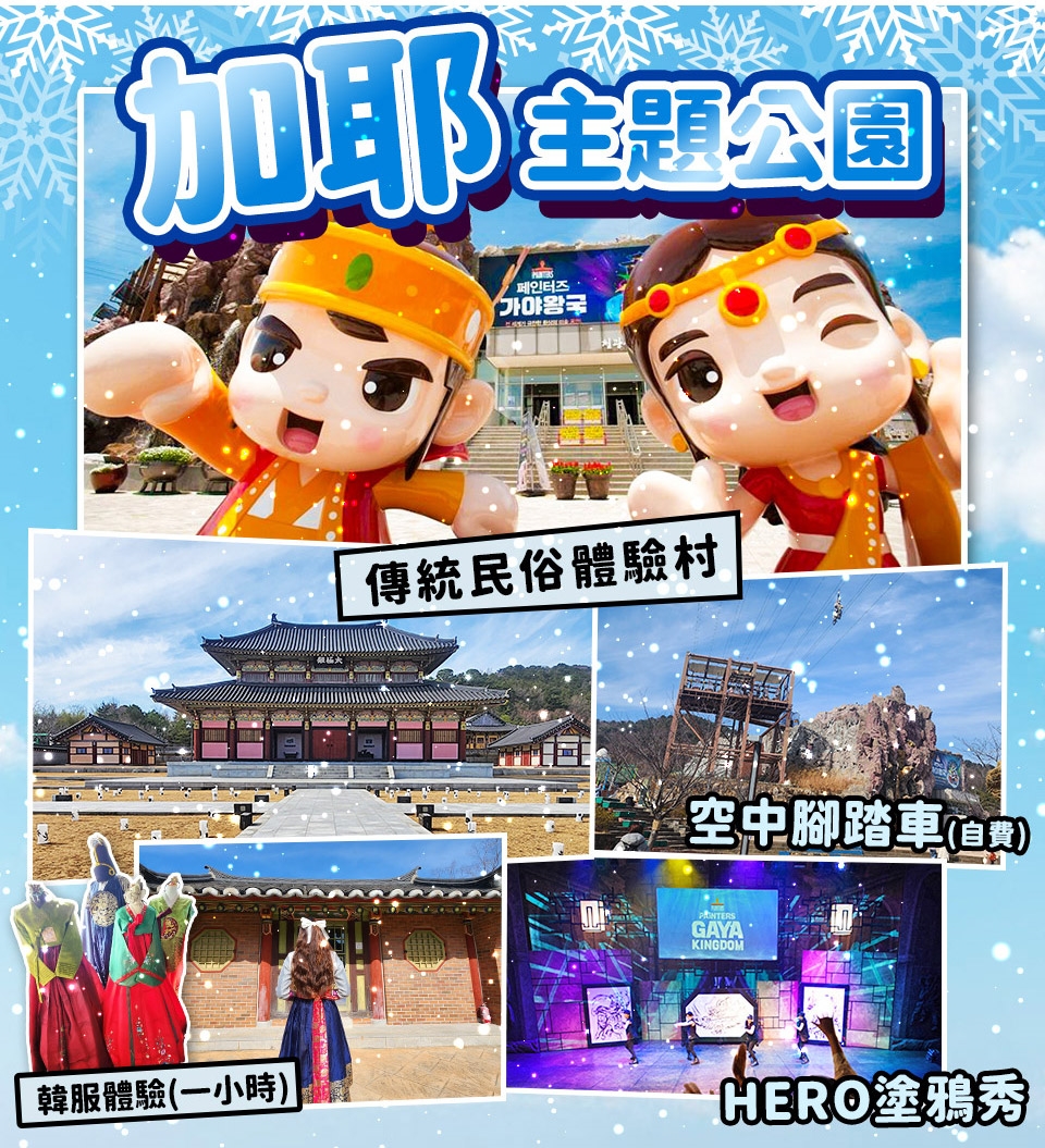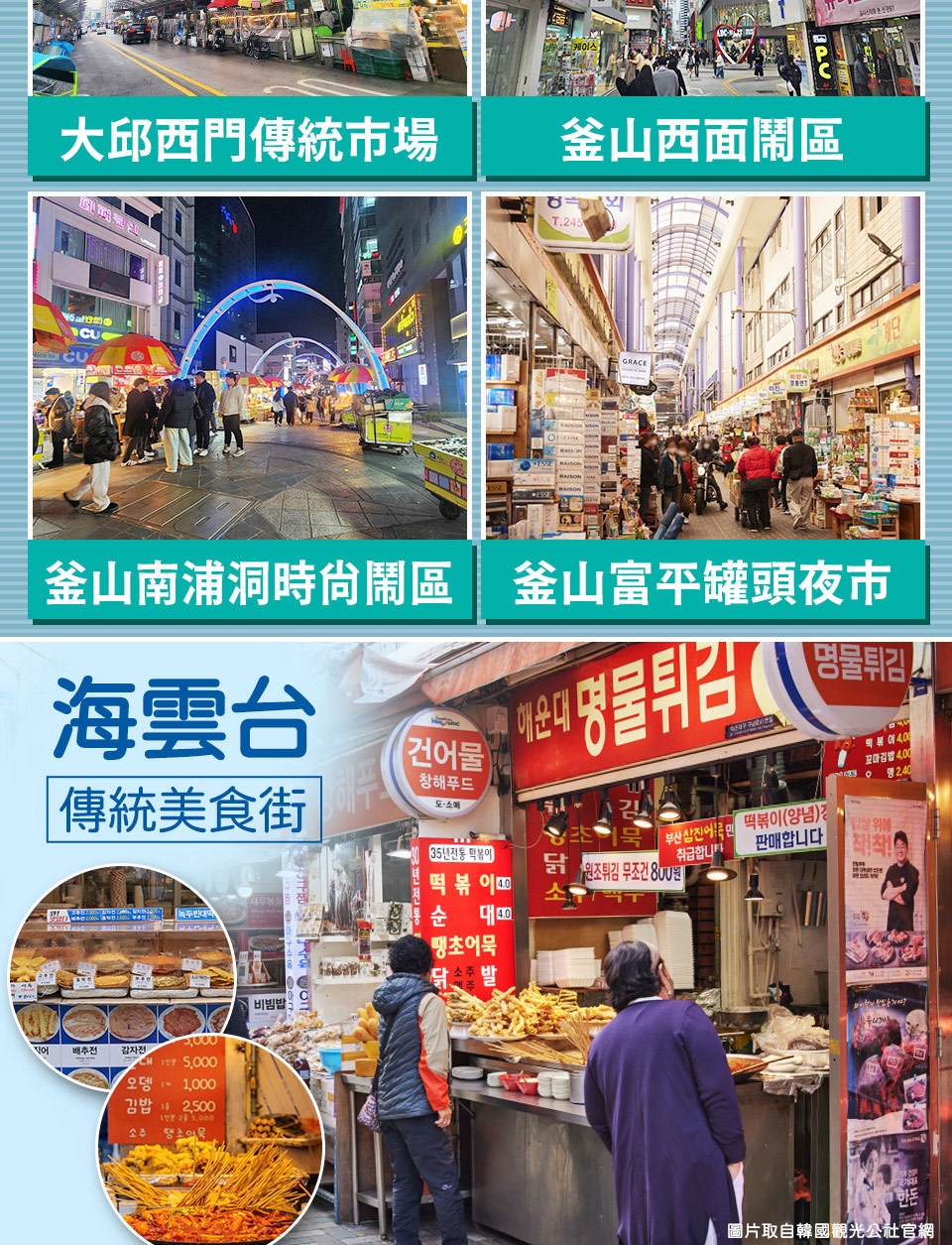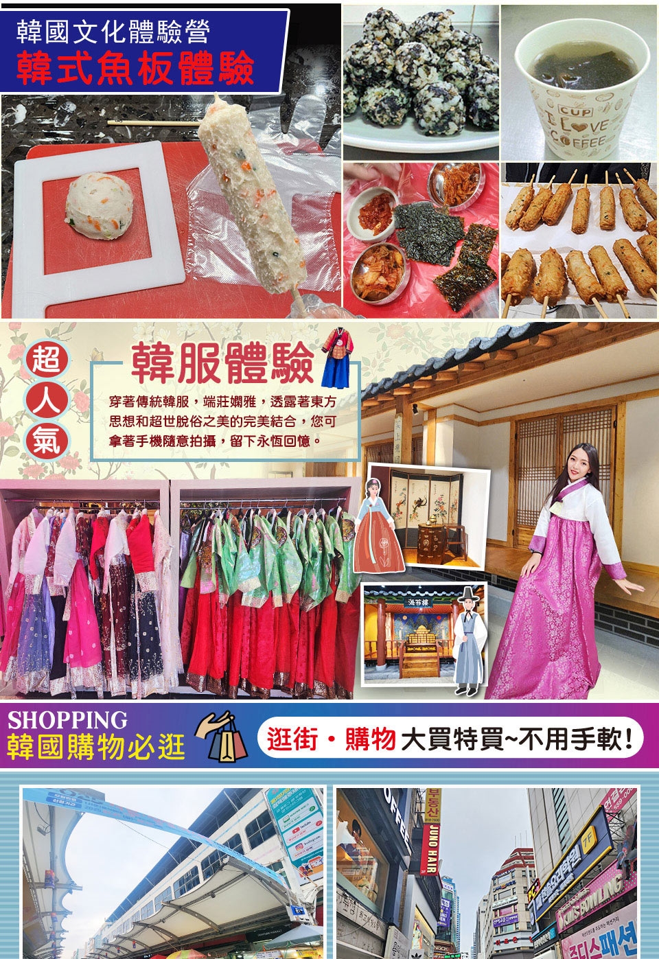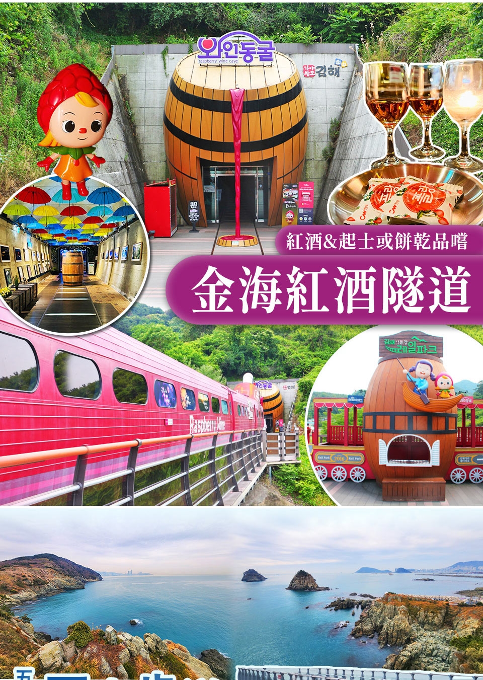 【第5天】 白險灘文化村+絕影海岸散步路→金海紅酒隧道(紅酒&餅乾品嚐)→加耶主題公園+塗鴉秀+韓服體驗(一小時)→韓國超市巡禮→富平罐頭夜市→釜山 / 桃園 |