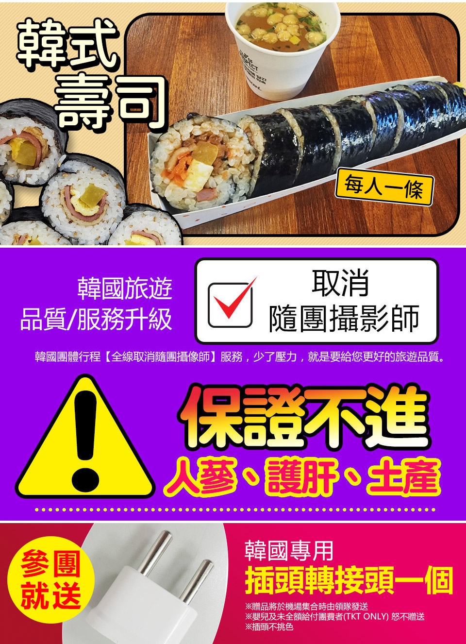 ※素食者貼心小叮嚀:素食客人如前往韓國旅遊,請先自行準備素食罐頭、泡麵等,以備不時之需!