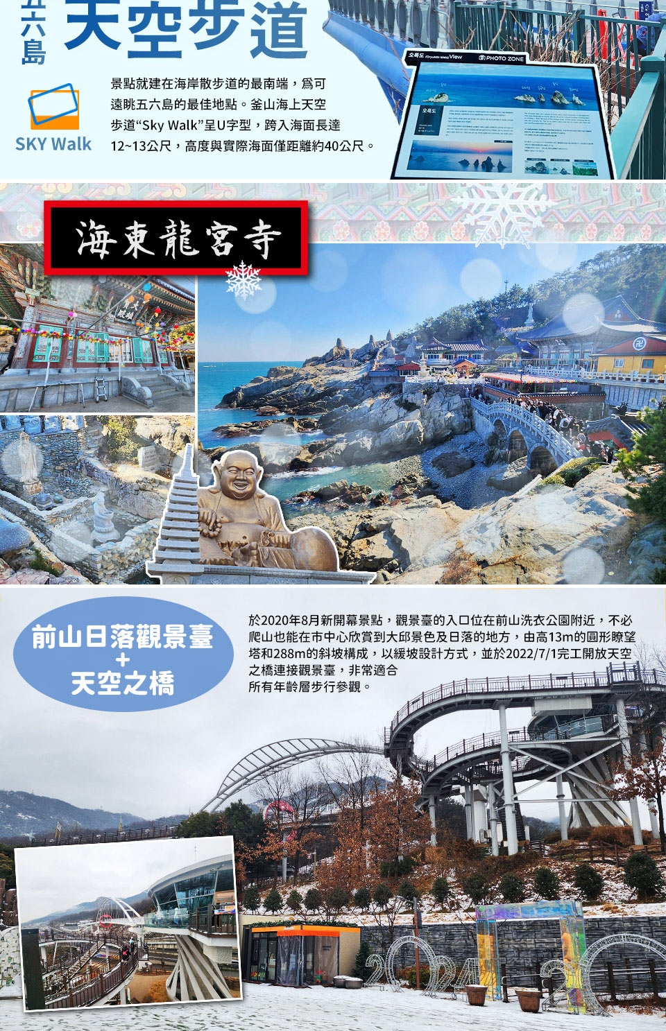 【第4天】 積木村甘川洞文化村→韓流時尚彩粧店→海女文化展覽館→五六島天空步道道(Sky Walk)→釜山西面鬧區 |