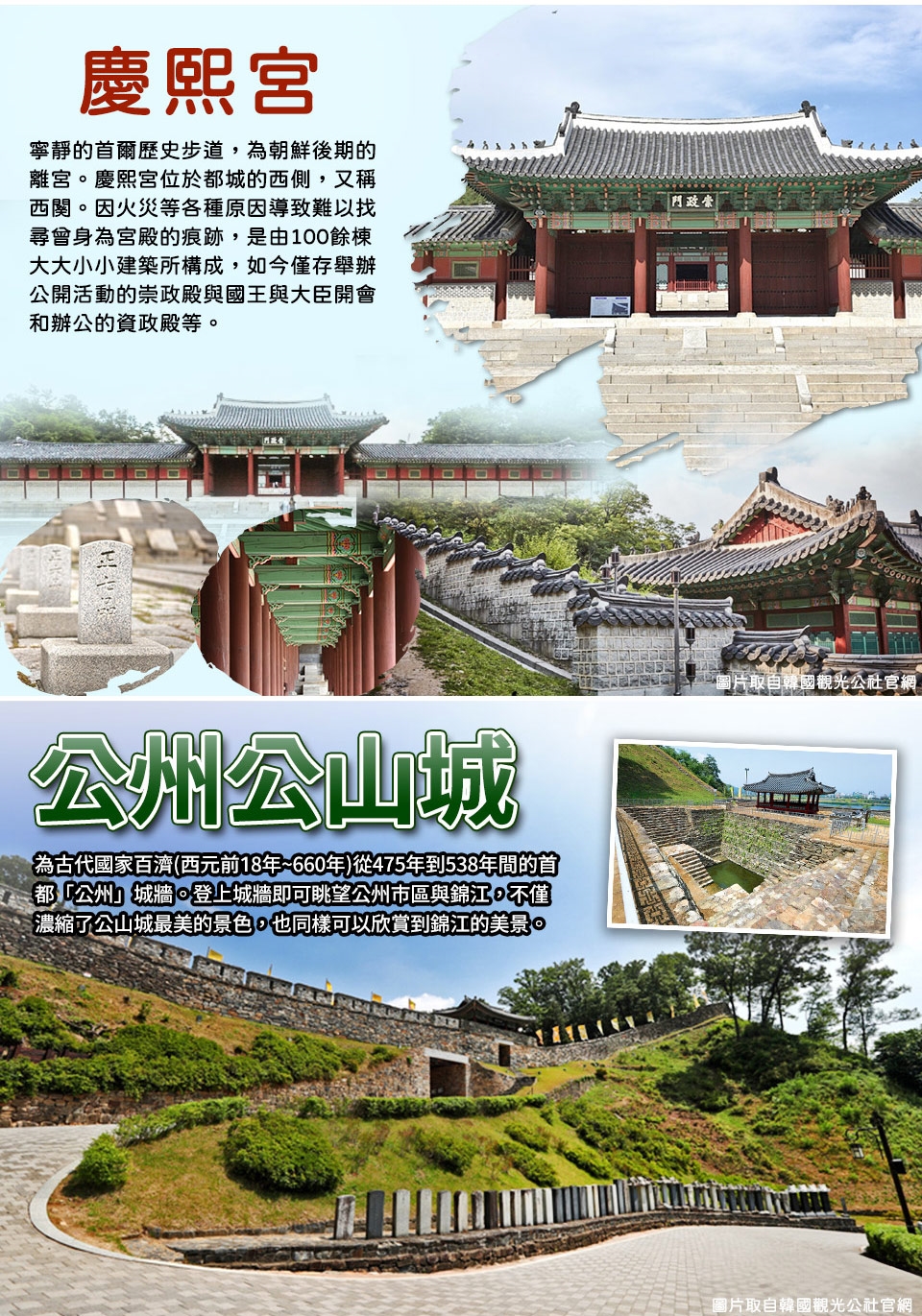 【第5天】 七甲山冰柱節噴泉慶典(含雪盆+烤栗子)→韓國100選~公州公山城→城安街商圈→超市巡禮→清州→桃園 |