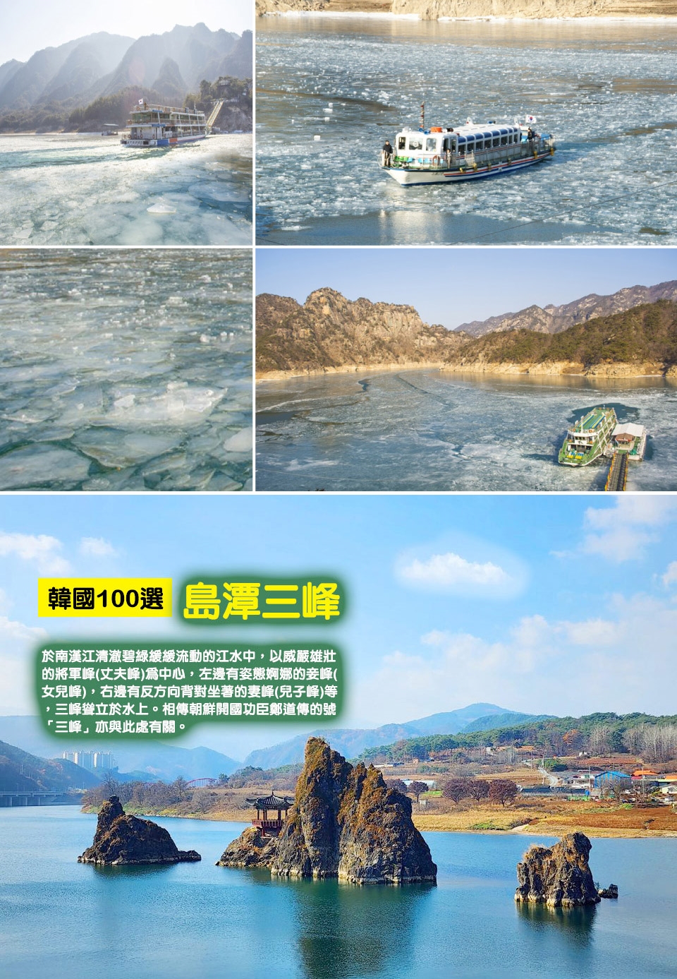 【第2天】 忠州湖碎冰船→韓國100選~島潭三峰(船上欣賞)→滑雪場滑雪【滑雪樂、堆雪人、打雪杖(提供雪場門票+雪橇、雪杖、雪鞋)】 |