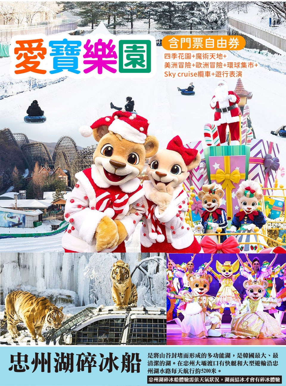 【第3天】 繽紛愛寶樂園(含門票+自由券+四季花園+魔術天地+美洲冒險+歐洲冒險+環球集市+纜車+銀色雪盆+遊行表演)→廣藏市場→東大門綜合商場 |