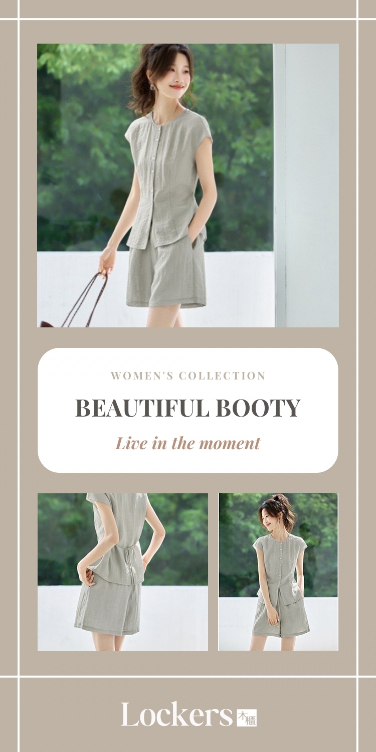商品內容: 亞麻無袖短褲兩件套 L114090405
