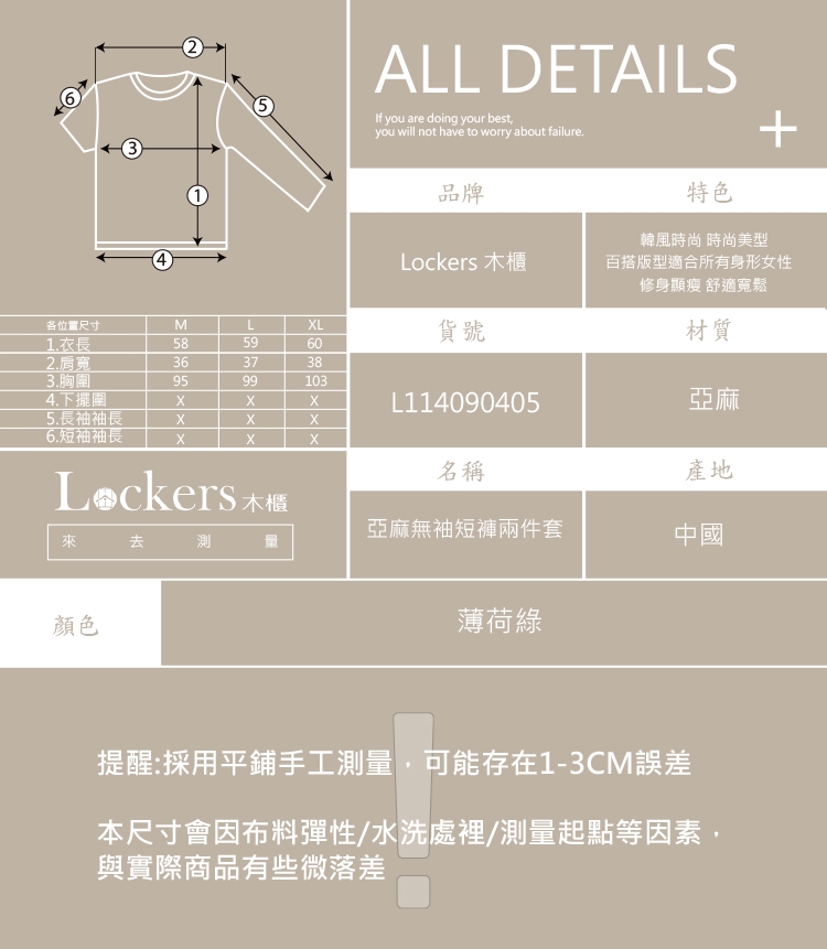 【Lockers 木櫃】亞麻無袖短褲兩件套 L114090405