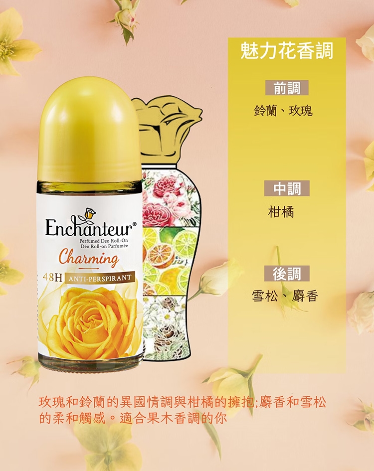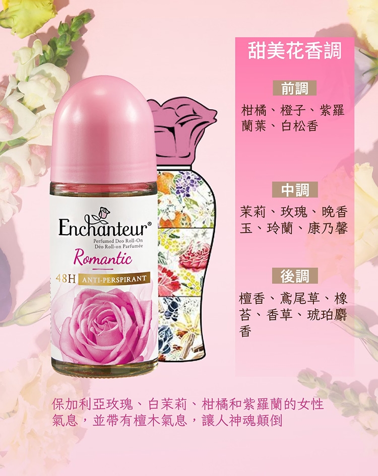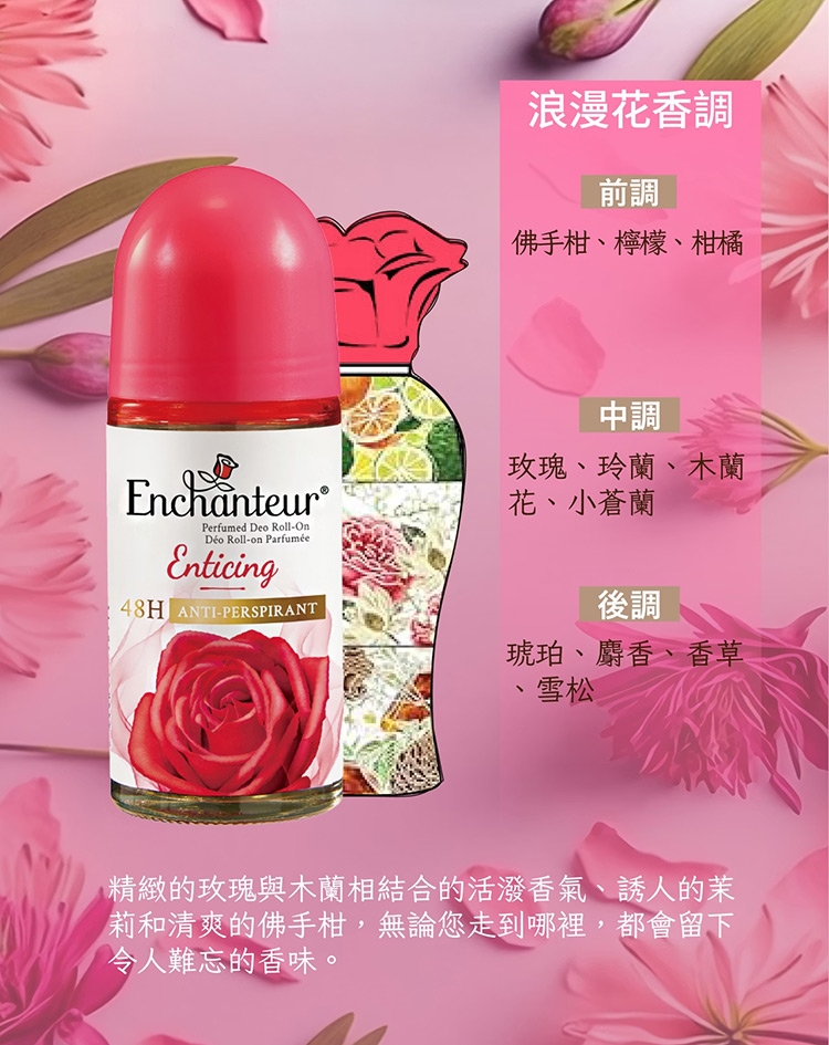浪漫花香(紅):精緻的玫瑰與木蘭相結合的活潑香氣、誘人的茉莉和清爽的佛手柑無論您走到哪裡,都會留下令人難忘的香味。