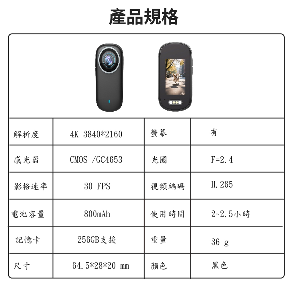 答:可以支持1.5~2小時錄影,TYPE C 充電式