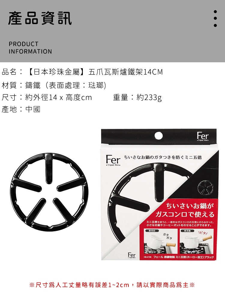 品名:【日本珍珠金屬】五爪瓦斯爐鐵架14CM