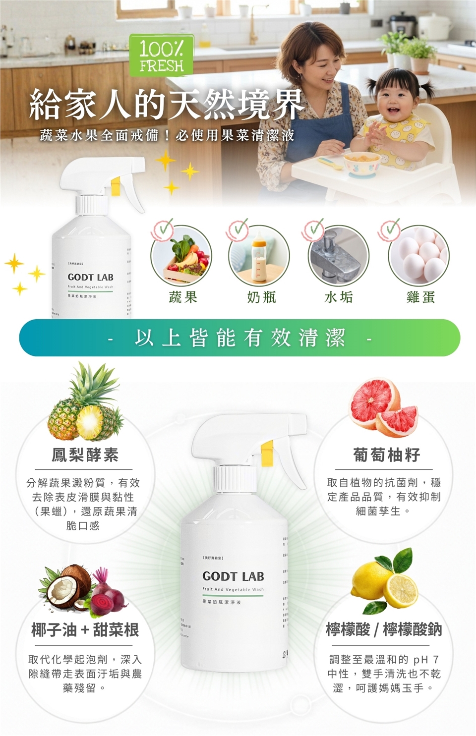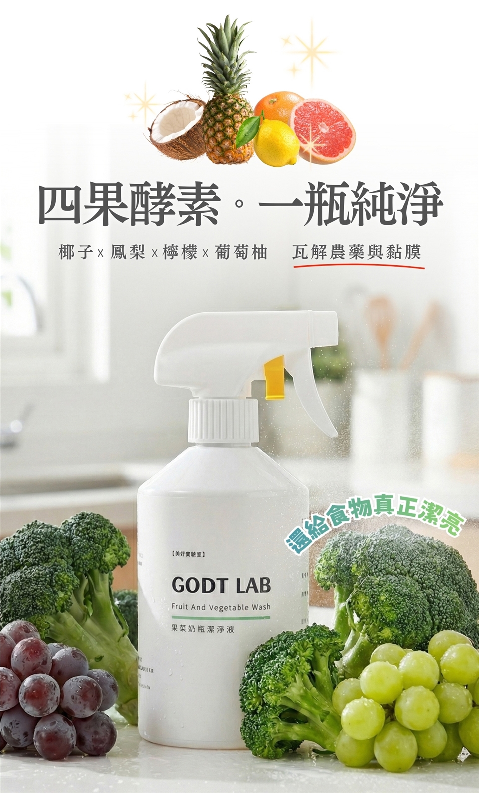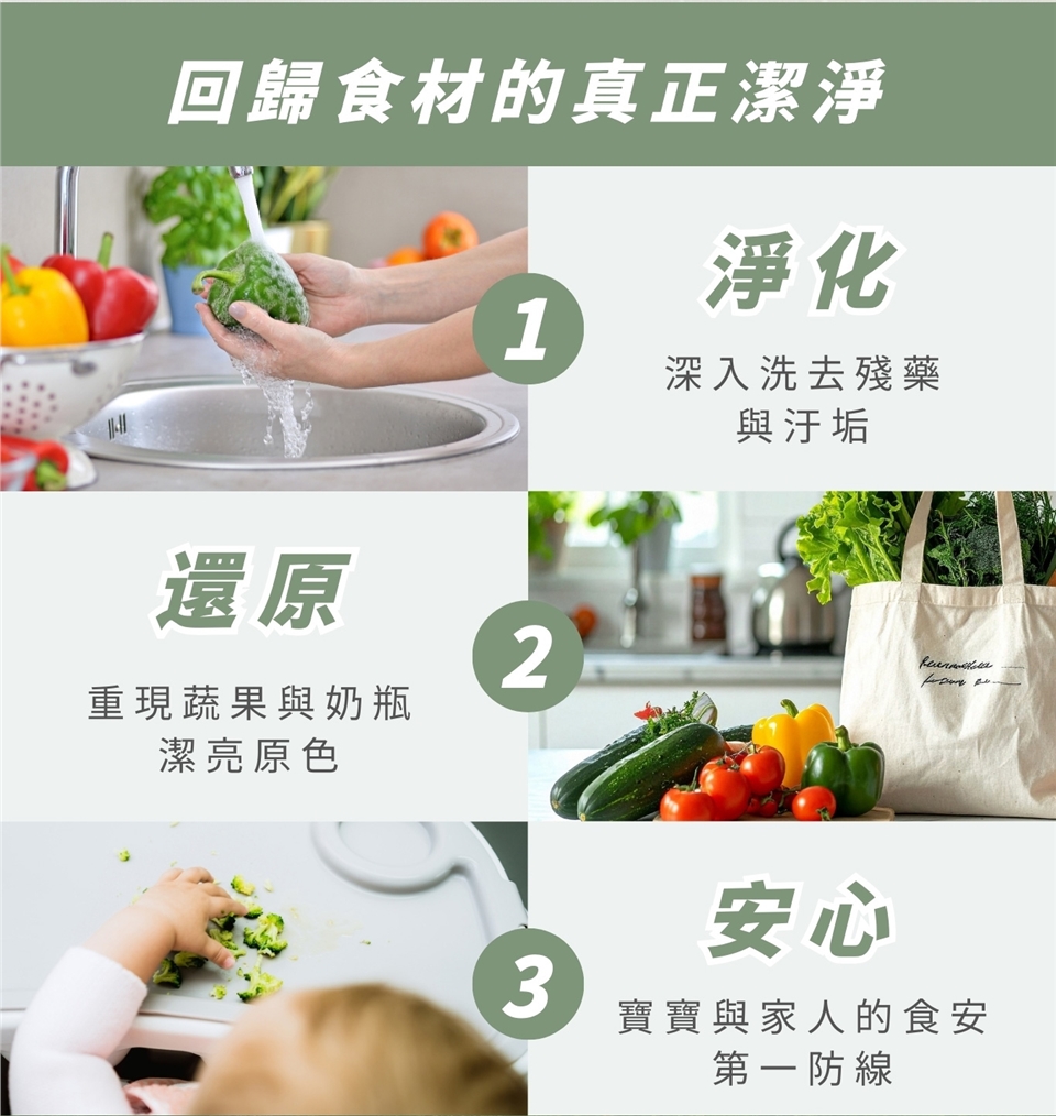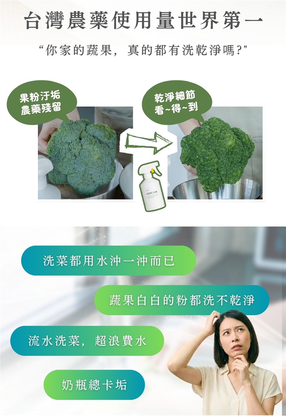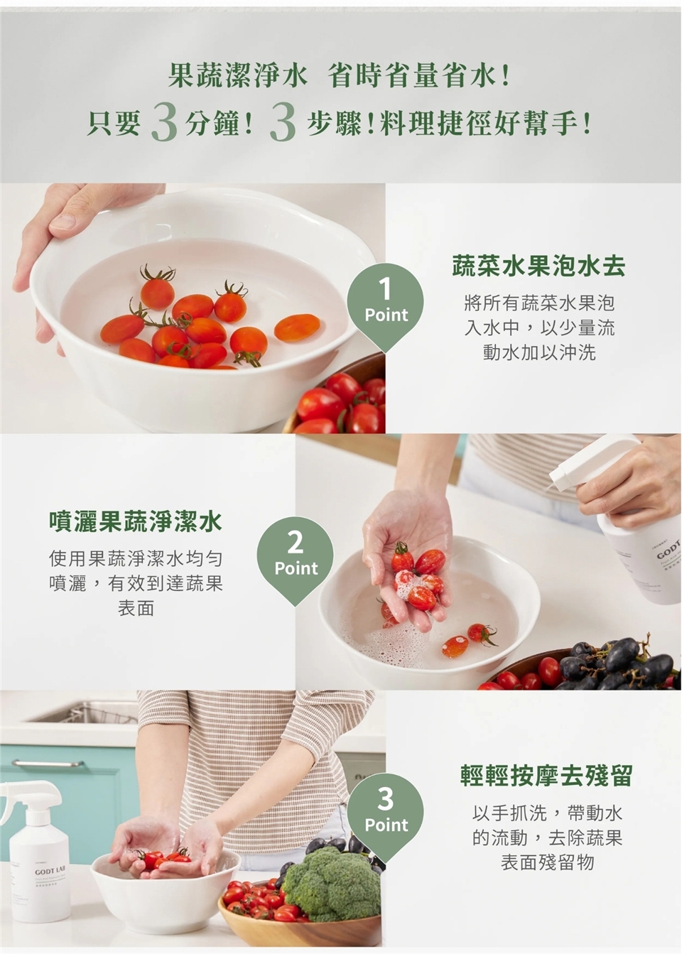 2.使用果蔬淨潔水均勻噴灑,有效到達蔬果表面