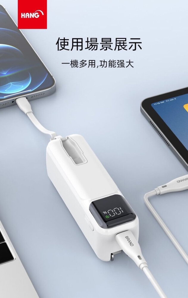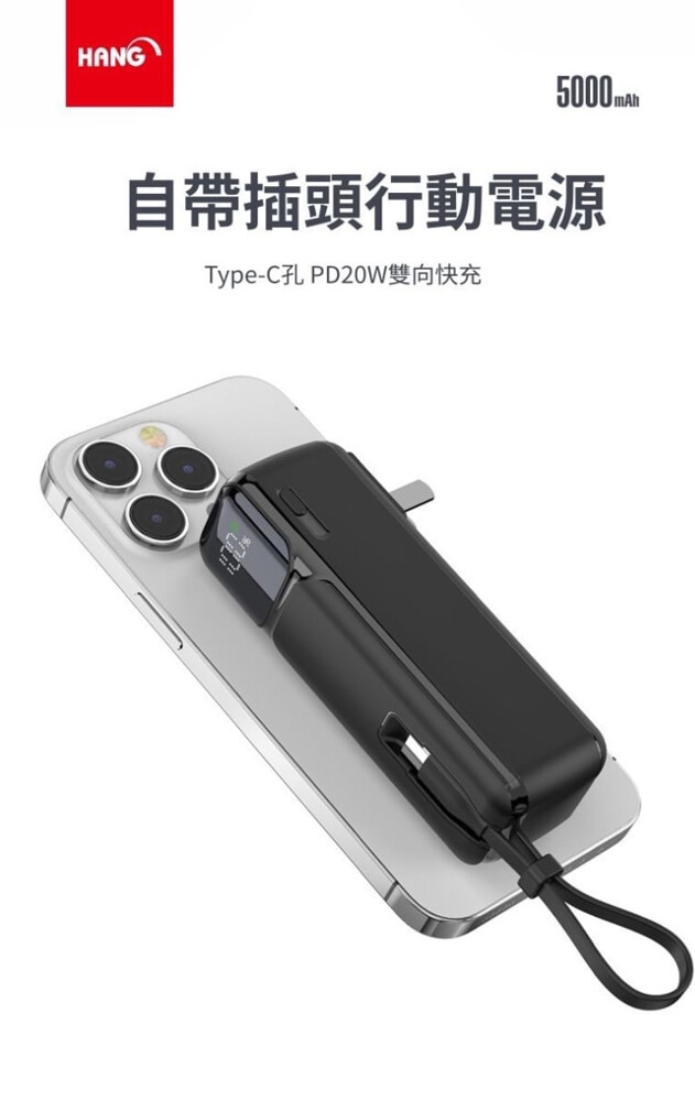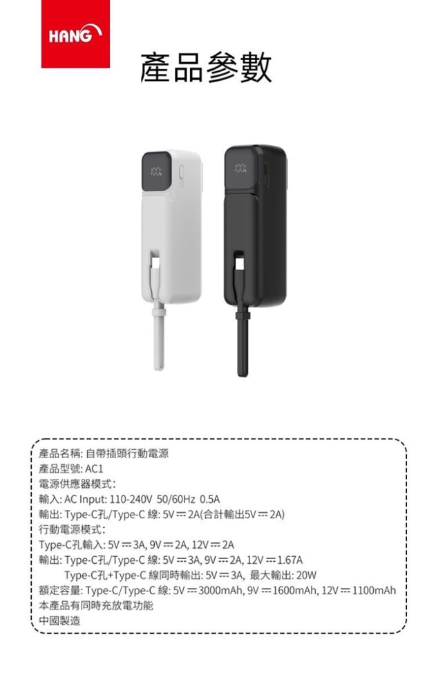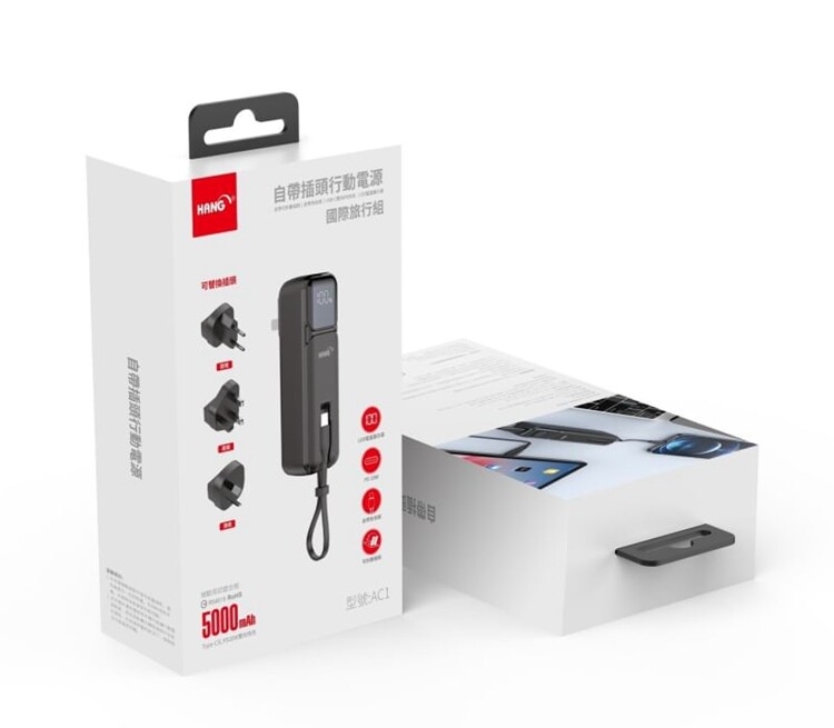 HANG AC1 5000mAh自帶插頭可折疊 帶Type-C線行動電源充電器-旅行組 附轉接頭