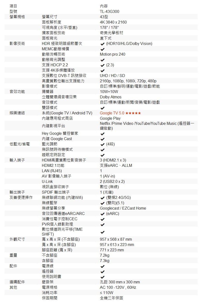 注意:此電視無搭配視訊盒(需另購),無法觀看無線電視(無法接天線),只能使用HDMI線連接現行的數位機上盒(如各大第四台、MOD、電視盒等),購買時請注意。