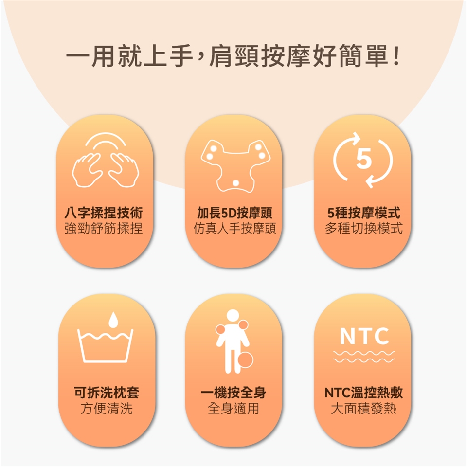 ◆5D仿人手按摩頭,強力撥筋揉捏,直擊酸痛肩頸