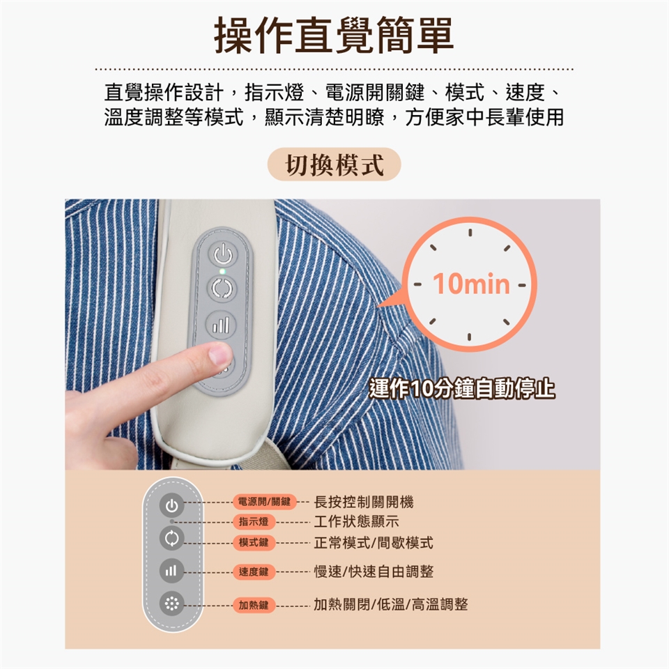 ◆5種模式搭配4檔力度,滿足不同按摩需求