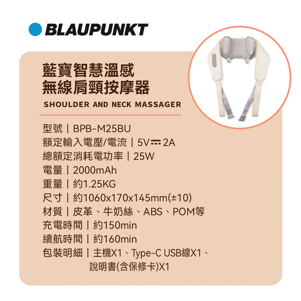 BLAUPUNKT 智慧溫感無線肩頸按摩器 BPB-M25BU
