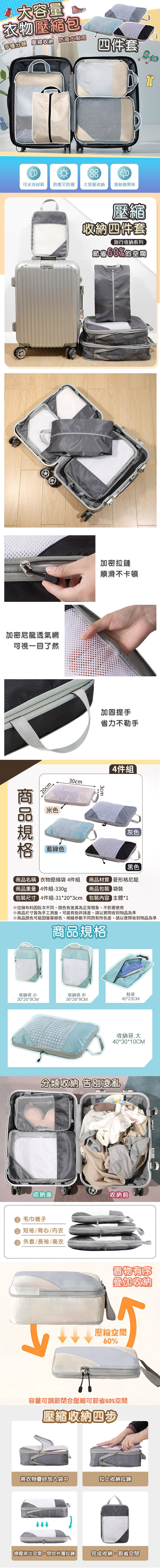 品名 : 韓式升級質感加厚衣物4件組大容量壓縮袋(F)