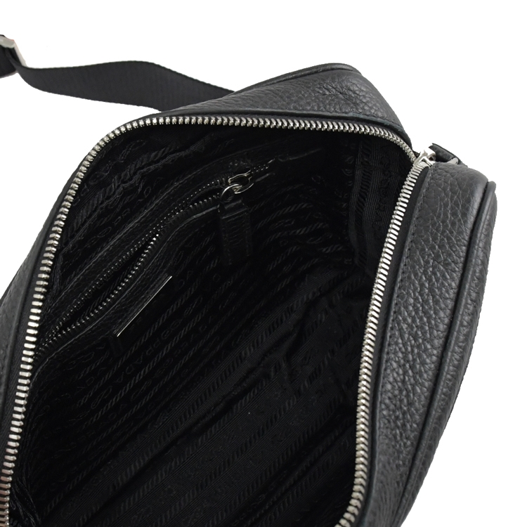 PRADA 專櫃再推熱銷相機包,質感精緻金屬三角LOGO加上荔枝牛皮,拉鍊開口,內1拉鍊袋+外1拉鍊袋供收納,可放長夾及手機等,大小適中,外出出遊皆合適,細緻柔軟小牛皮,釋放出都會優雅的時尚風格,簡潔俐落的包款。