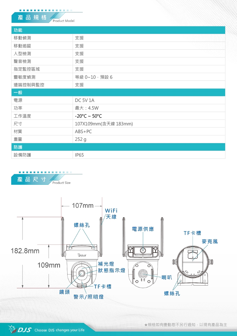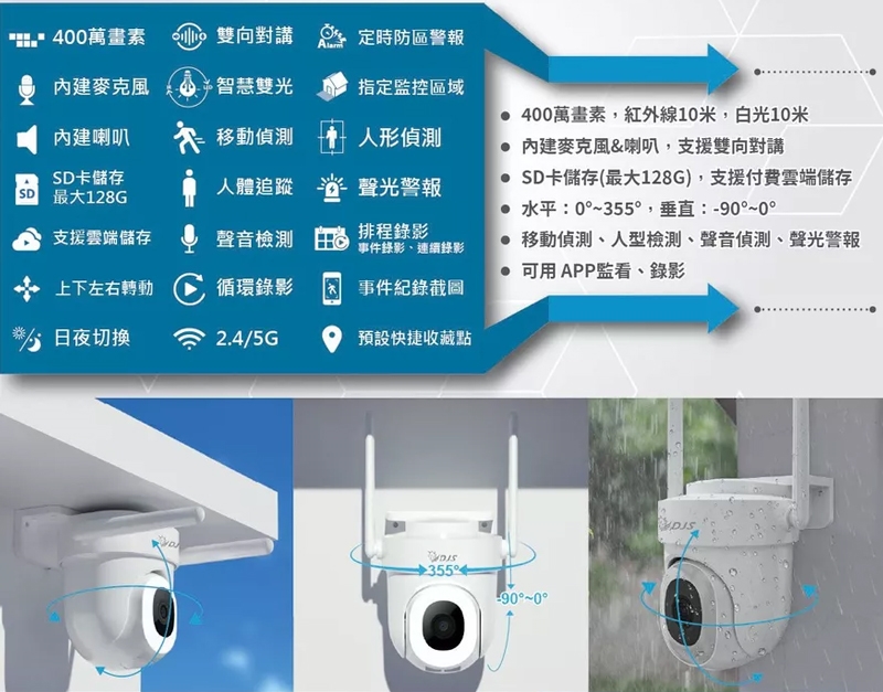 移動偵測、影像追蹤功能、上下左右轉動