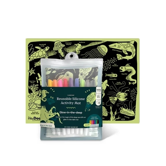 ◆ 可重複使用的A3 尺寸塗鴉畫墊 每張矽膠畫墊皆精心設計 結合教育主題 如恐龍 英文字母 農場動物 數字 100個方格等 讓好奇的孩子們在描繪 塗色的同時也能學習