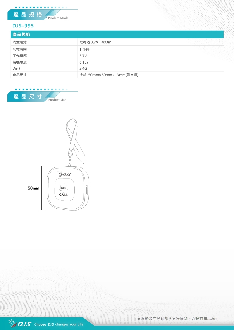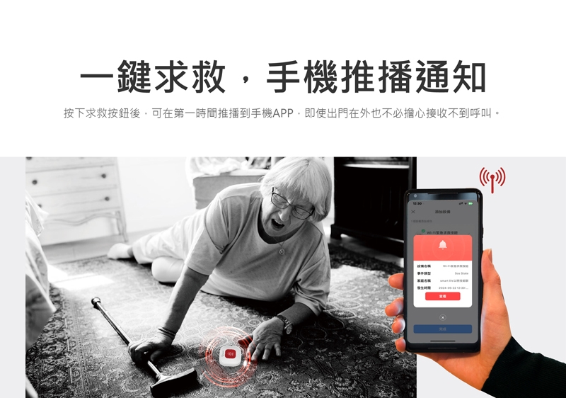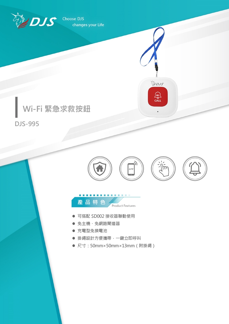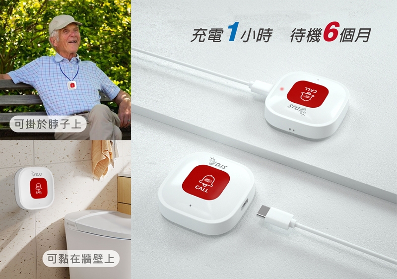 掛繩設計方便攜帶,一鍵立即呼叫