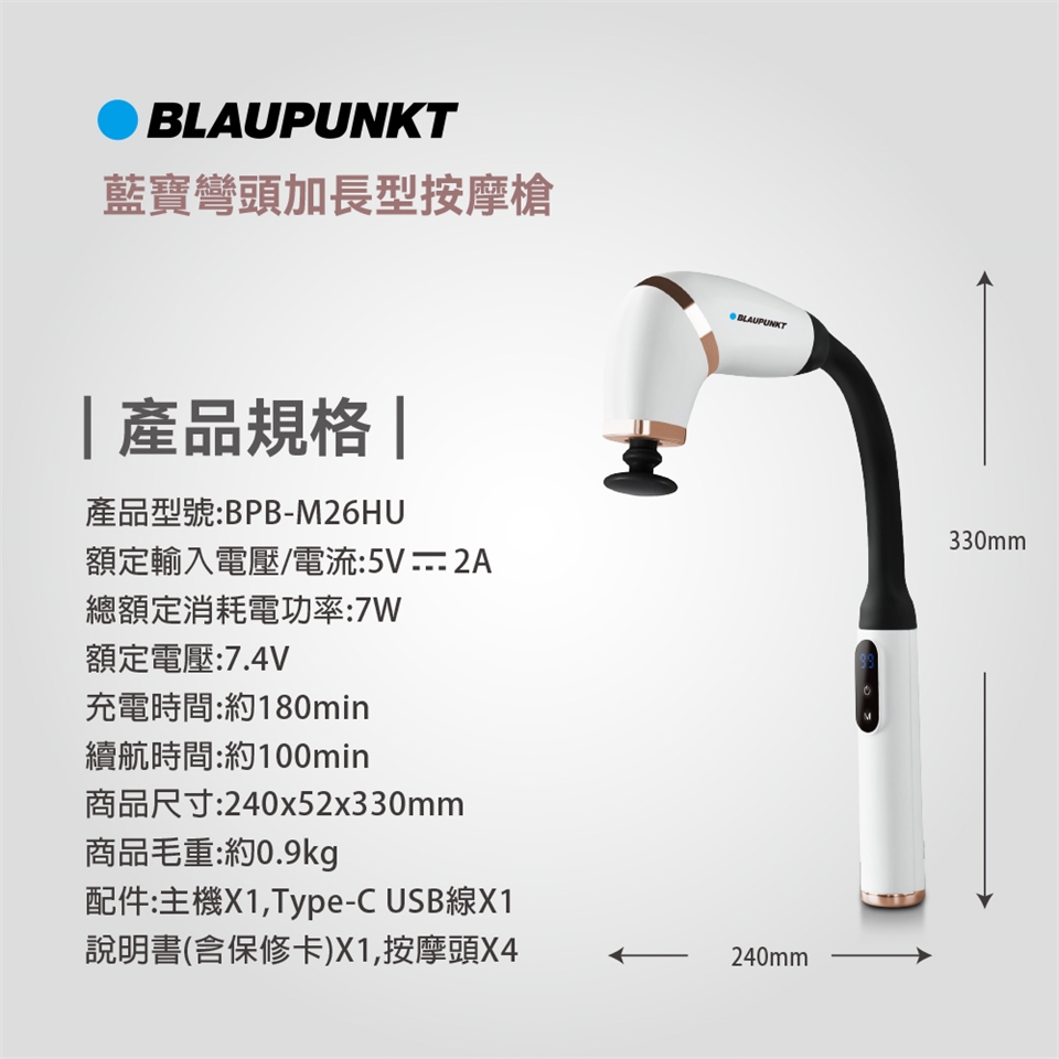 BLAUPUNKT 彎頭加長型按摩槍 BPB-M26HU