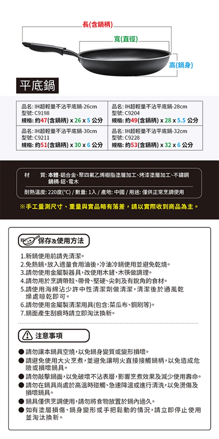 ◎ 尺寸:約47x26x5cm(含鍋柄)