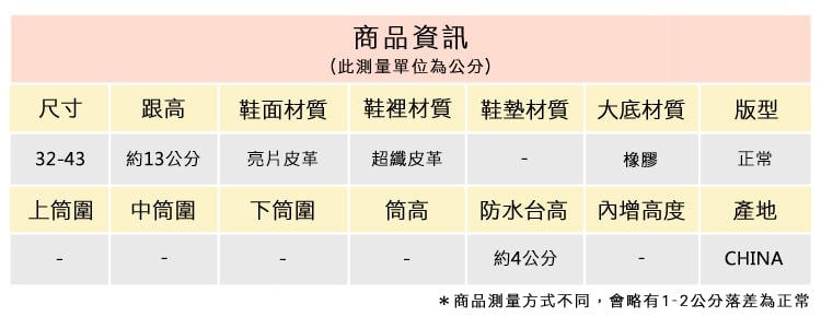2.鞋類商品依功能及用途之不同,鞋底各有其止滑係數之個別不同,使用鞋類商品請用於正常平坦之路面,非雨鞋或雨靴類商品,請避免穿著於下雨濕滑路面上行走。