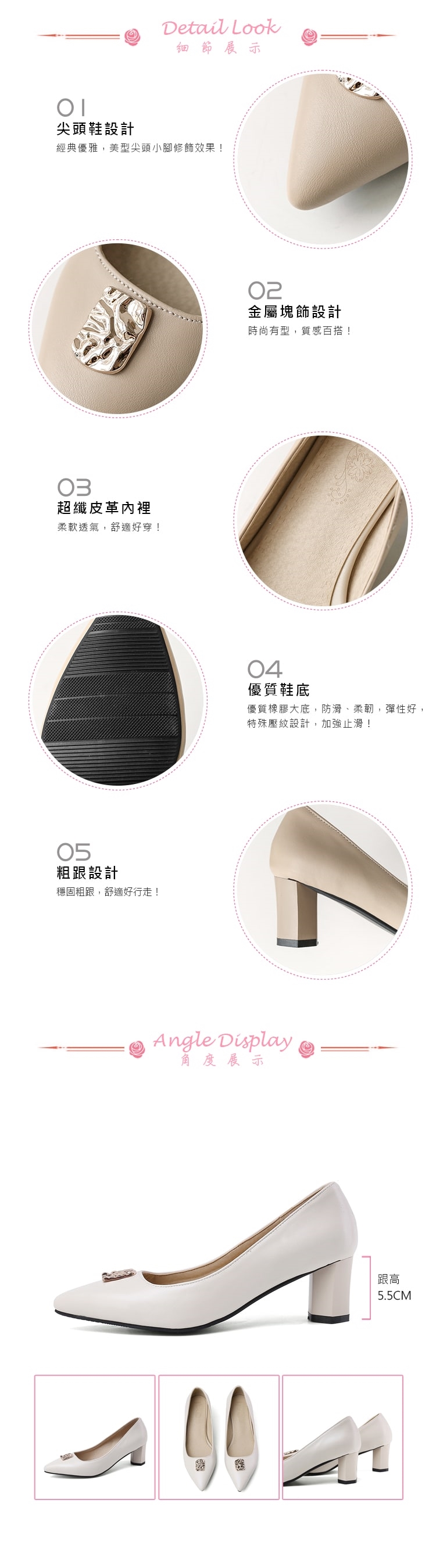 異型鞋跟凸顯柔美/實穿也百搭/粗跟平穩好走