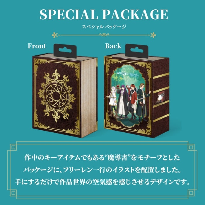 包裝上貼有弗里倫小組的插圖,其主題是作品中的關鍵物品「魔法書」。
