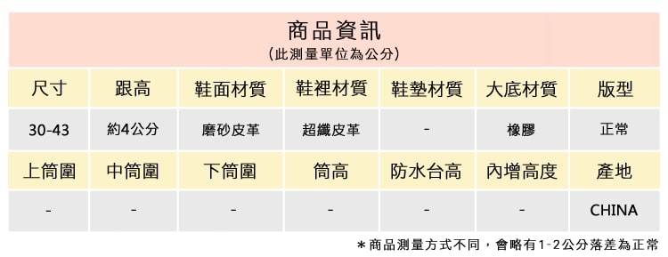 2.鞋類商品依功能及用途之不同,鞋底各有其止滑係數之個別不同,使用鞋類商品請用於正常平坦之路面,非雨鞋或雨靴類商品,請避免穿著於下雨濕滑路面上行走。