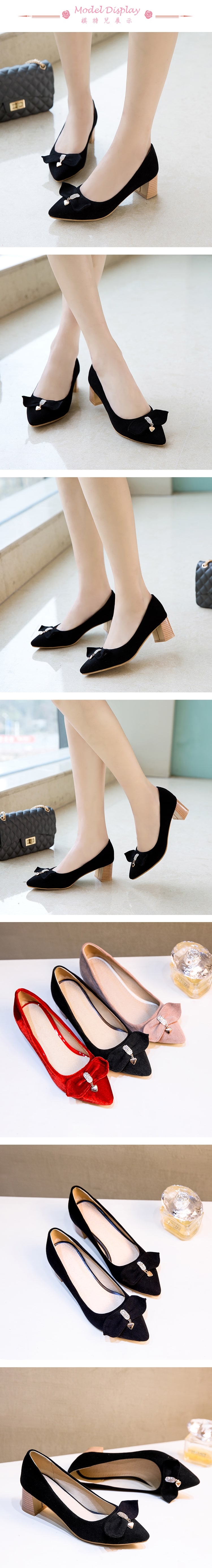 【Kissxxx】尖頭絨面蝴蝶結粗跟鞋/尖頭絨面典雅蝴蝶結造型氣質粗跟鞋 女鞋 黑