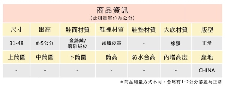 2.鞋類商品依功能及用途之不同,鞋底各有其止滑係數之個別不同,使用鞋類商品請用於正常平坦之路面,非雨鞋或雨靴類商品,請避免穿著於下雨濕滑路面上行走。