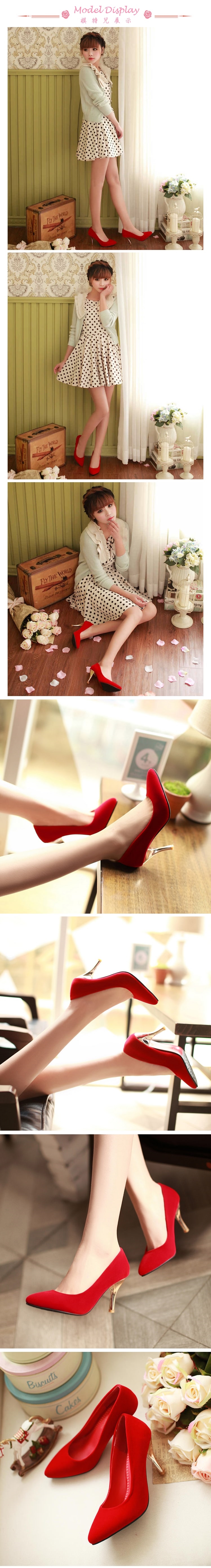 【Kissxxx】絨面尖頭淺口高跟鞋/貴氣質感絨面尖頭淺口高跟鞋 女鞋 紅