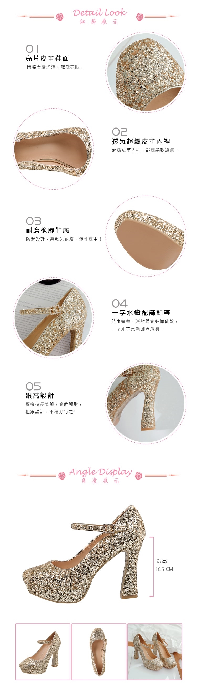 高跟設計修飾腿型/好穿好走的設計/華麗水鑽配飾