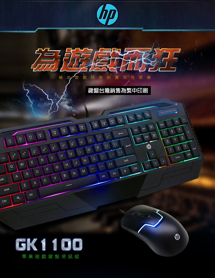HP惠普 有線電競鍵鼠組 GK1100