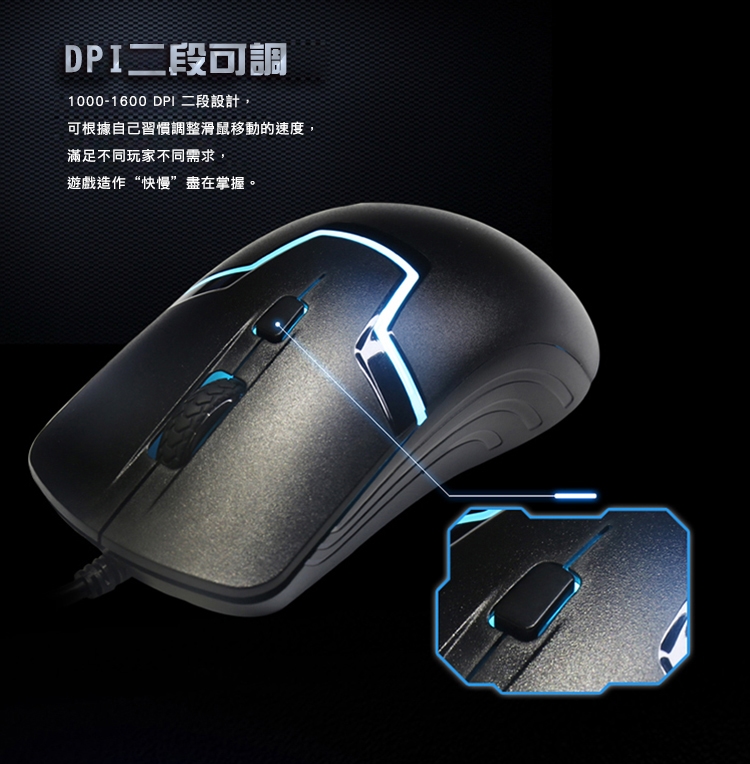 ◆滑鼠2段DPI設定:1000-1600