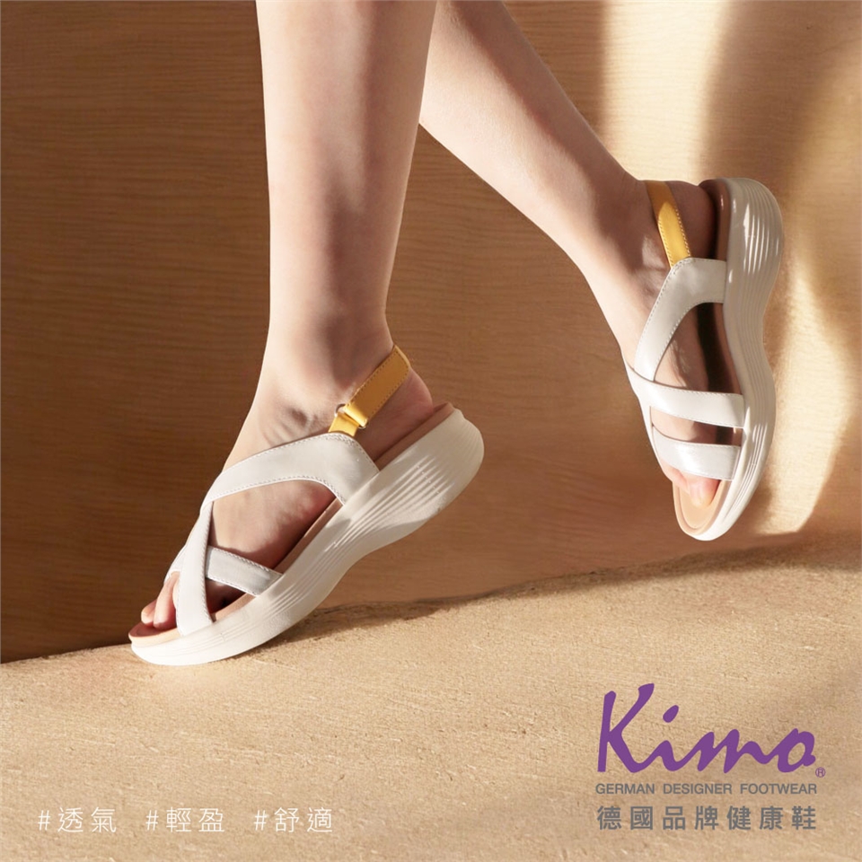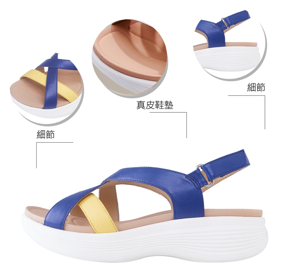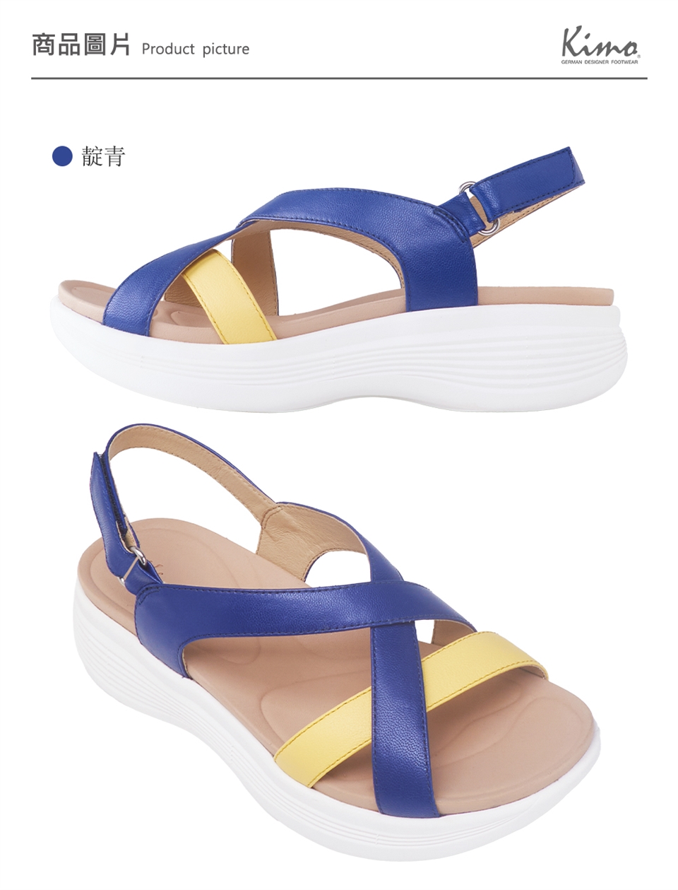 Kimo 輕盈設計蜜黃牛皮紋靛青羊皮可調扣帶涼鞋 女鞋 (靛青 KBESF147086)