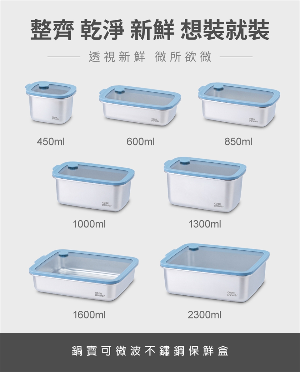 - 【CookPower 鍋寶】鮮盾pro系列可微波不鏽鋼保鮮盒熱銷5件組